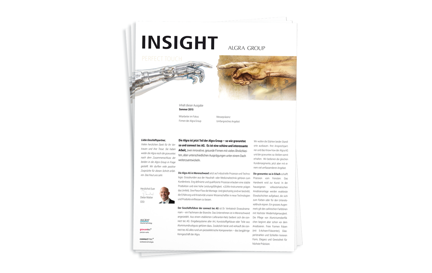 International bedeutender Hersteller von hochwertigen Eingabesystemen, Schildern, Fronten und Gehäusen. Durch den Zusammenschluss der Firmen Algra AG und gravuretec sa wurde im Herbst 2014 die Algra Group geschaffen, um gegenseitige Synergien zu nutzen.